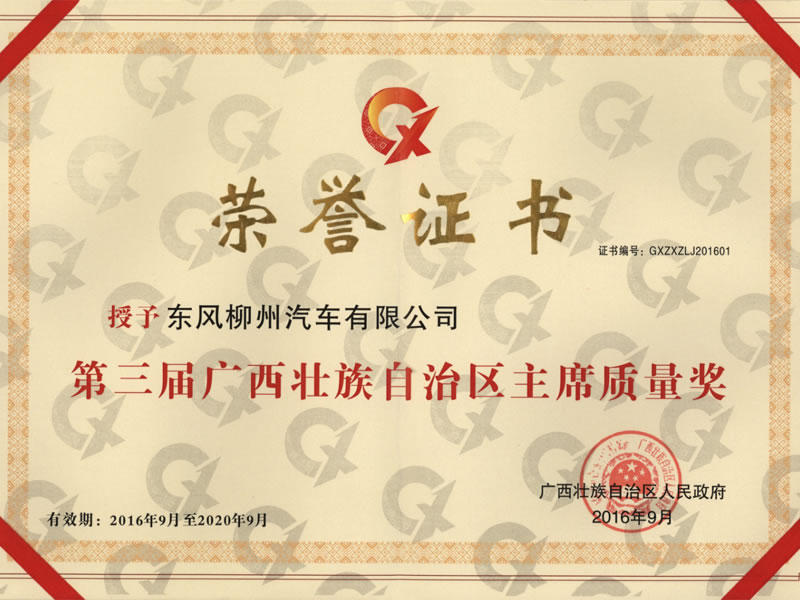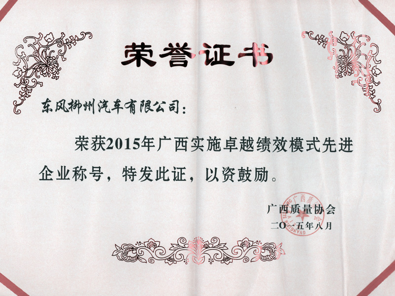 获奖名称:2015年广西实施卓越绩效模式先进企业