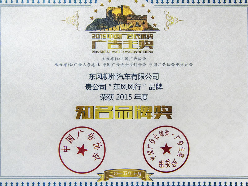 获奖名称:2015年中国广告长城奖“知名品牌奖”